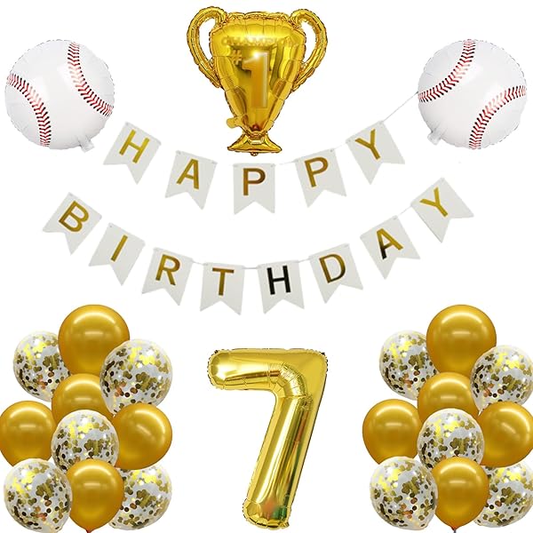 男の子 野球ボール誕生日 バルーン 風船 セット 野球バースデー トロフィー 飾り セット 7歳 誕生日 数字 バルーン 付け