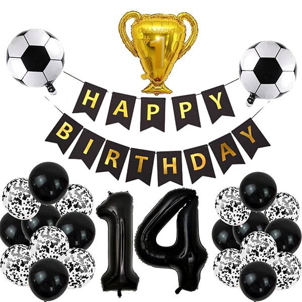 男の子 サッカーボール 誕生日 バルーン 風船 セット サッカー バースデー トロフィー 飾り セット 14歳 誕生日 数字 バルーン 付け