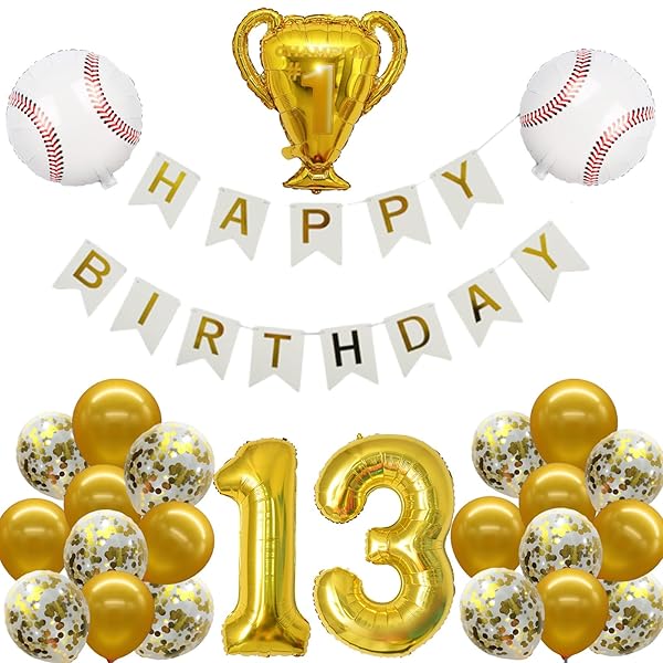男の子 野球ボール誕生日 バルーン 風船 セット 野球バースデー トロフィー 飾り セット 13歳 誕生日 数字 バルーン 付け