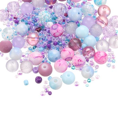 PATIKIL 2-8mm アソーテッドガラス樹脂ビーズ クラック入り砂利丸ビーズ小さなヨーロピアンスペーサーシードビーズ混合バルク 宝石メイキングDIYブレスレットクラフトネックレス用の穴付き ライトパープル