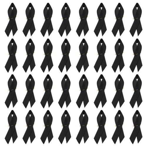 PATIKIL 30個 黒ポリエステルリボンサテンピン 安全ピン付き啓発リボンサテン