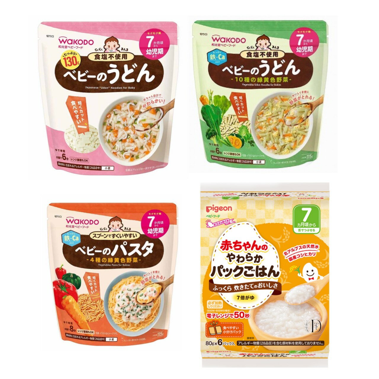 wakodo 和光堂 らくらくまんま ベビーのうどん 10種の緑黄色野菜 ベビーのパスタ 4種の緑黄色野菜 ピジョン 赤ちゃんのやわらかパックごはん 7ヵ月頃~ アソート 合計4点セット