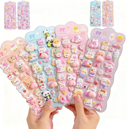 Dorasu3D立体シール6枚セットちいかわぷっくりキャラクターシール可愛いごほうび携帯/手帳/DIY用子供女の子向け贈り物手芸用品