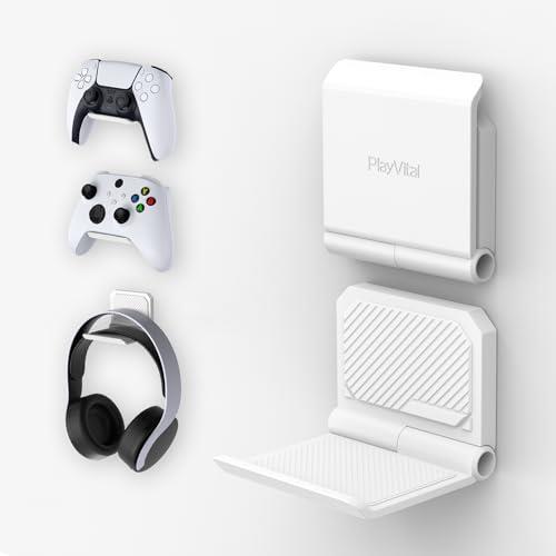 PlayVital FOLD ps5/ps4コントローラー用ウォールマウントスタンド、Xboxシリーズ X/S、Switch Pro 用折りたたみ式ウォールスタンド、ゲーミングヘッドセットスタンド、XboxワイヤレスヘッドセットやPulse 3Dヘッドセット用ウォールホルダー【ホワイト-2セット】