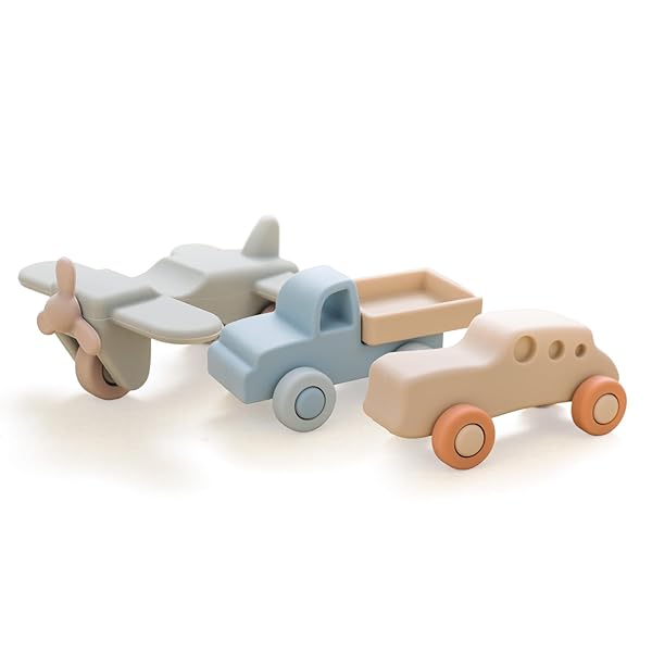 ミニカー 飛行機 おもちゃ 乗り物おもちゃ 3点セット シリコン 知育玩具 柔らかい 赤ちゃん 0歳~1歳 2歳 3歳 新生児贈り物 プレゼント