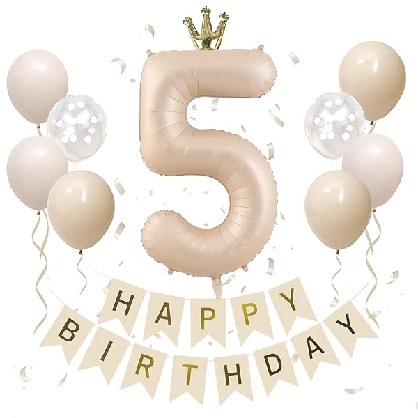 5歳 誕生日 バルーン セット 王冠付き 数字 バルーン 90cm 大きい ナンバーバルーン くすみカラー 誕生日 飾り付け 風船 男の子 女の子 5 キャラメル