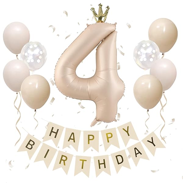 4歳 誕生日 バルーン セット 王冠付き 数字 バルーン 90cm 大きい ナンバーバルーン くすみカラー 誕生日 飾り付け 風船 男の子 女の子 4 キャラメル