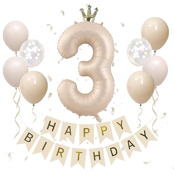 3歳 誕生日 飾り付け 40インチ 大きい 数字 風船 くすみカラー 誕生日 飾り セット 王冠付き ナンバーバルーン かわいい バースデーバルーン 3 キャラメル