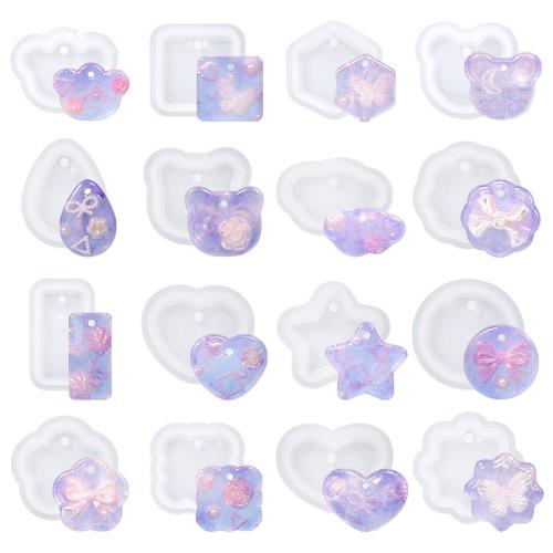 サムコス シリコンモールド 16個セット 穴あき ハート 丸 正方形 ソフトモールド エポキシ樹脂 UVレジン DIY ピアス ネックレス ペンダント キーホルダー 樹脂工芸品 アクセサリー 作成 抜き型 再利用可能 (J)