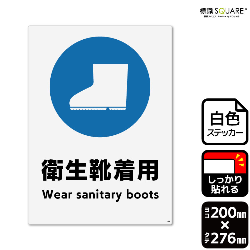 【送料無料】食品工場などで衛生靴(長靴)の着用を促すステッカー。しっかり貼れてはがれにくいシールタイプの標識です。