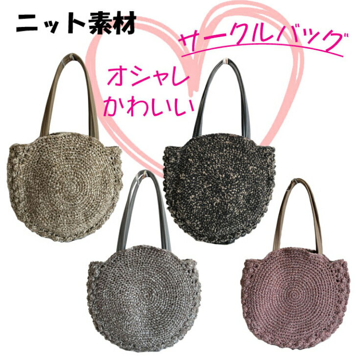 かわいいサークル型のバッグ♪ニット素材を編み込んだおしゃれなバッグです。普段使いにとっても使いやすいトート型。秋冬のファッションのワンポイントにおすすめ!