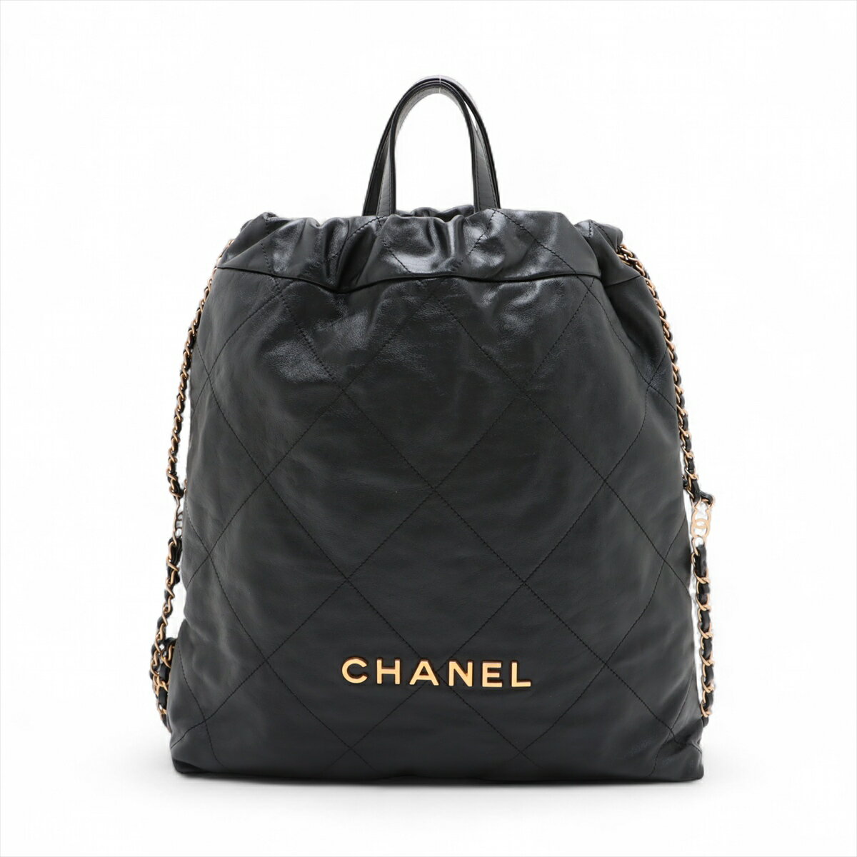 【中古】シャネル シャネル22 バックパック シャイニーカーフスキン チェーンリュック ブラック ゴールド金具 ランダムプレート AS3313