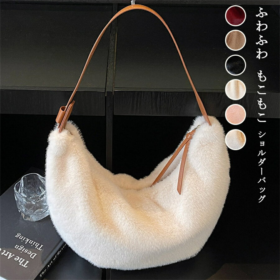 ファーバッグ レディース ふわふわ ショルダーバッグ 2way 餃子型 かばん 肩掛け ファスナー開閉 鞄 おしゃれ きれいめ 通勤バッグ 上品 品質 柔らかい 大人 可愛い