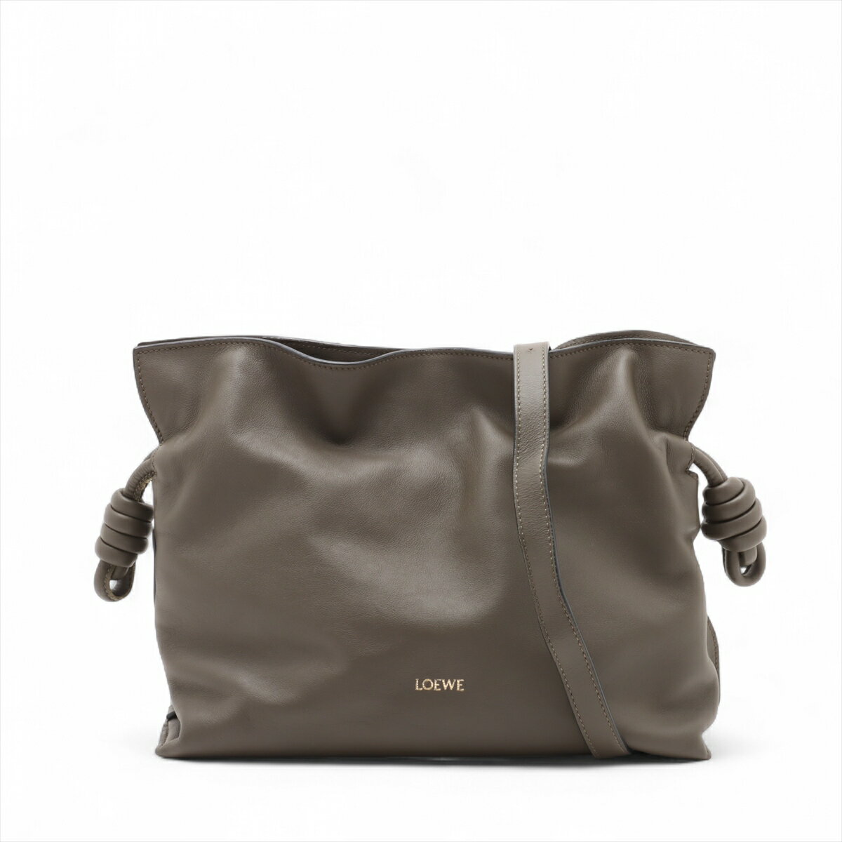 【中古】ロエベ フラメンコ クラッチ レザー ショルダーバッグ カーキ