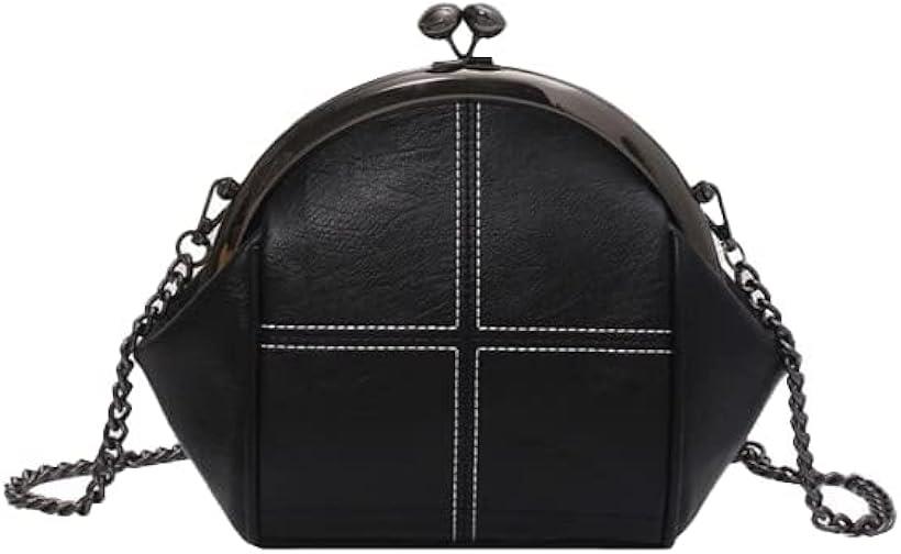 がま口バッグ ショルダー レディース ショルダーバッグ ゴシック ブラック 黒 ゴシック系 モード系 地雷系 闇 韓国 おしゃれ かわいい (ブラック, Free Size)