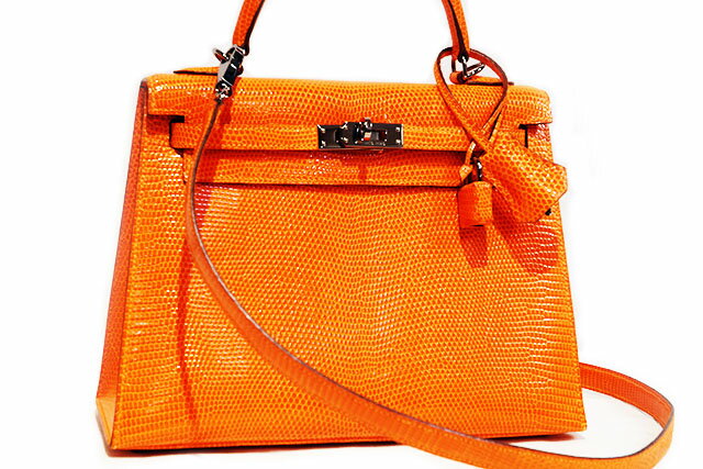 華やかなオレンジカラーのリザードケリー25cm 1度くらいの使用の新品同様