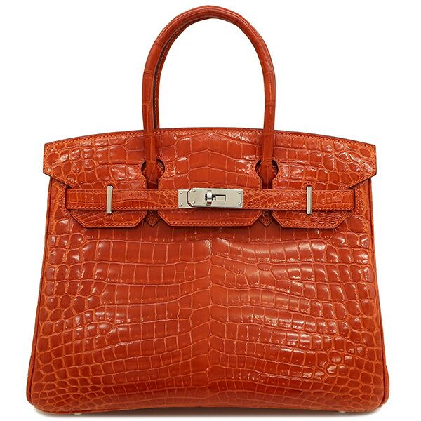 エルメス HERMES バーキン30 バッグ ハンドバッグ オレンジ ニロティカス クロコ 鰐 レザー 本革 SV金具 美品 送料無料
