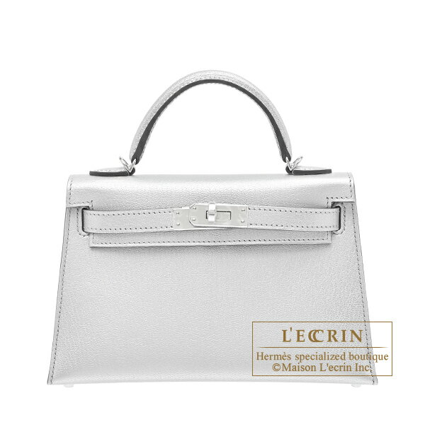 パリの静寂を包む朝露を閉じ込めたかのような、淡くやわらかなメタリックシルバー"アルジャン”。 エルメス/ケリーミニ/新品/送料無料
