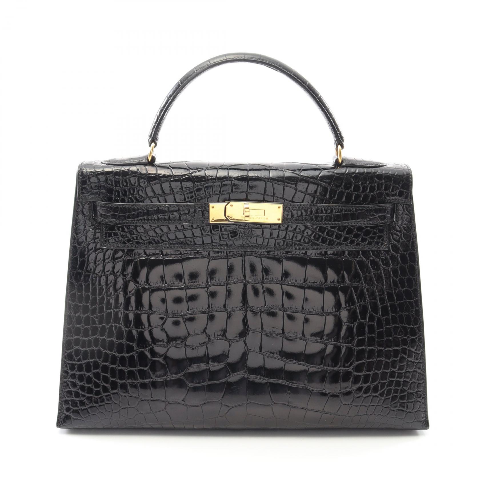 エルメス HERMES ケリー32 ハンドバッグ バッグ アリゲーターリセ ブラック系 【中古】