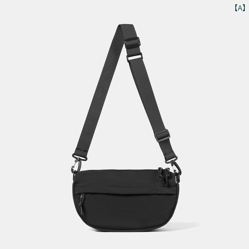 鞄 男性用 ユニセックス シンプル ギョウザ型 肩掛け 普段使い 軽量 ナイロン ブラックx3