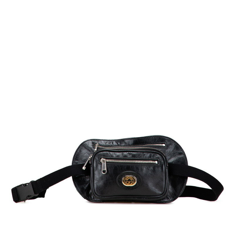 グッチ インターロッキングG ウエストバッグ ボディバッグ 575857 ブラック レザー レディース GUCCI 【中古】