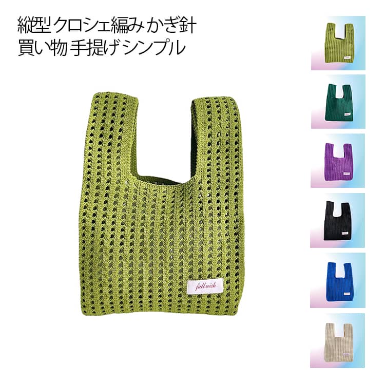 マルシェバッグ 縦型 クロシェ編み かぎ針 ハンドバッグ コンパクト 買い物 手提げ シンプル おしゃれ