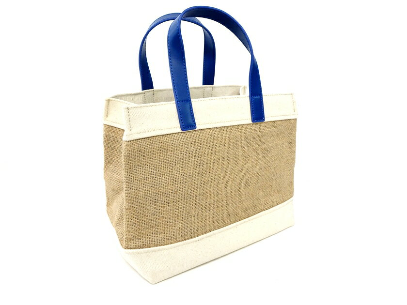 YAHKI ヤーキ リネン×キャンバス レザーハンドル スクエア型 ハンドバッグ YH-389 定1.2万 ブラウンベージュ×ブルー系▲012▼20627m05