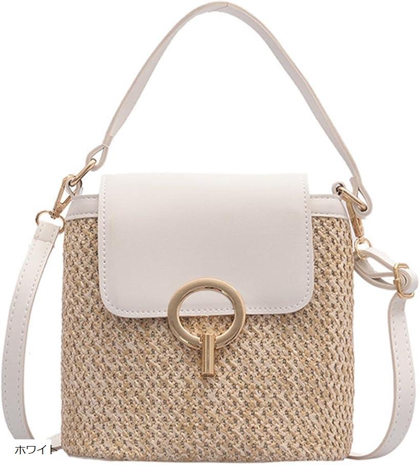ショルダーバッグ 2way 手提げバッグ ストローバッグ 編みバッグ 斜めがけ 肩掛け ハンドバッグ かごバッグ おしゃれ きれいめ カジュアル レディース(ホワイト)