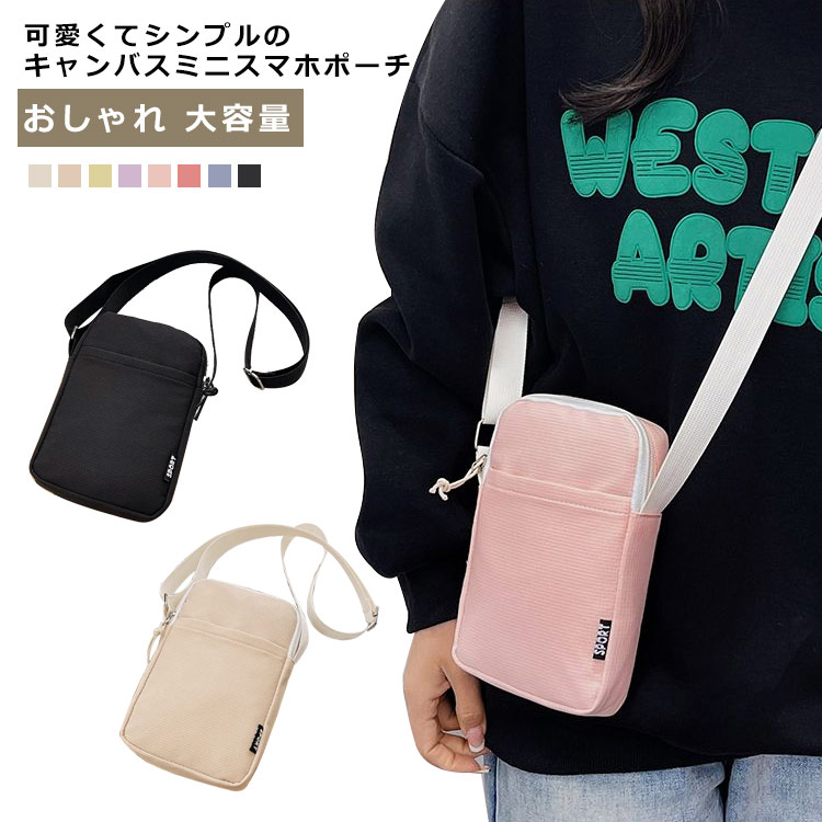 13*20*4cm 薄型 帆布スマホポーチ 男女兼用 軽量 大容量 洗える 縦