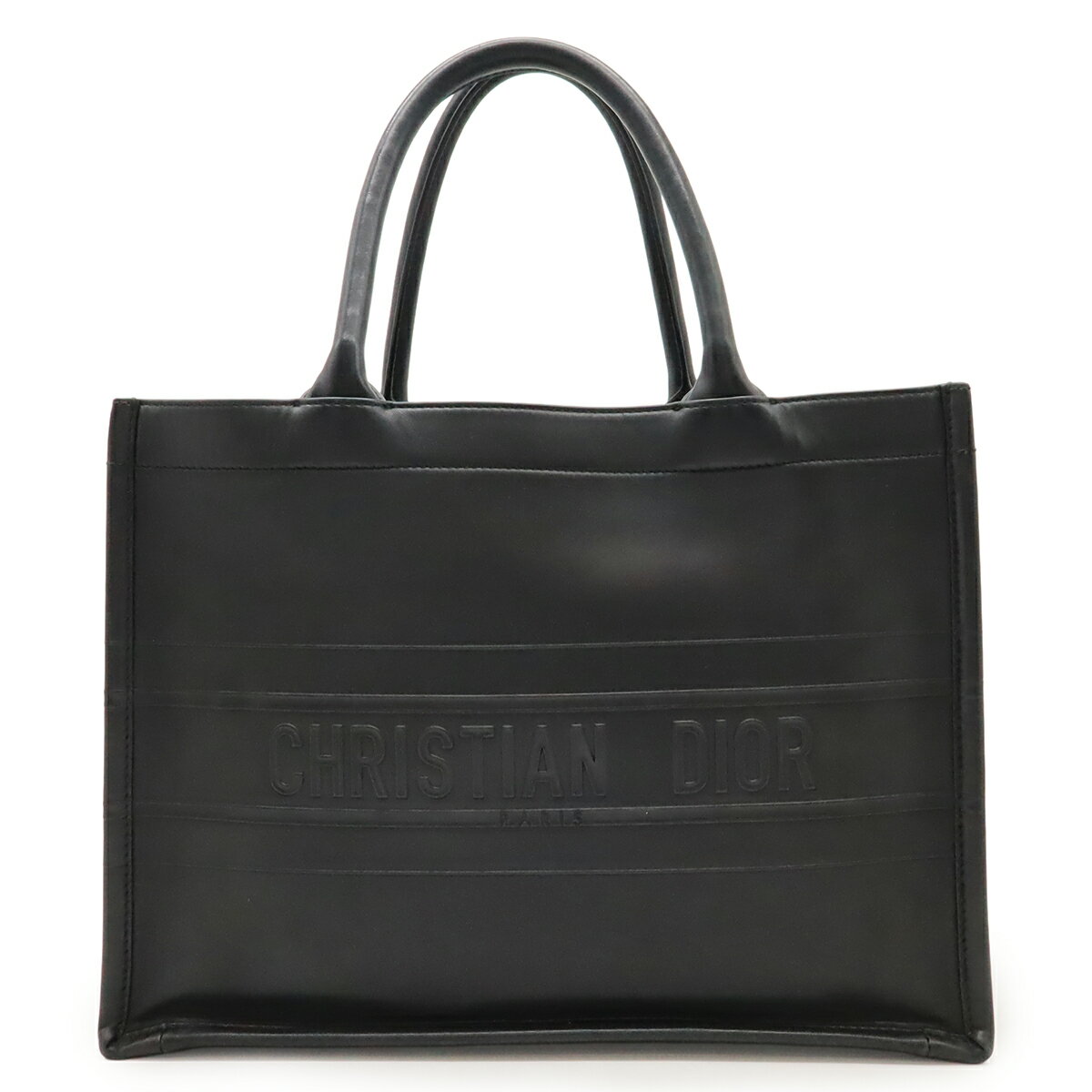 Christian Dior クリスチャン ディオール ブックトート ミディアム トートバッグ カーフスキン レザー ブラック 黒 M1296ZGSB_M900 【中古】