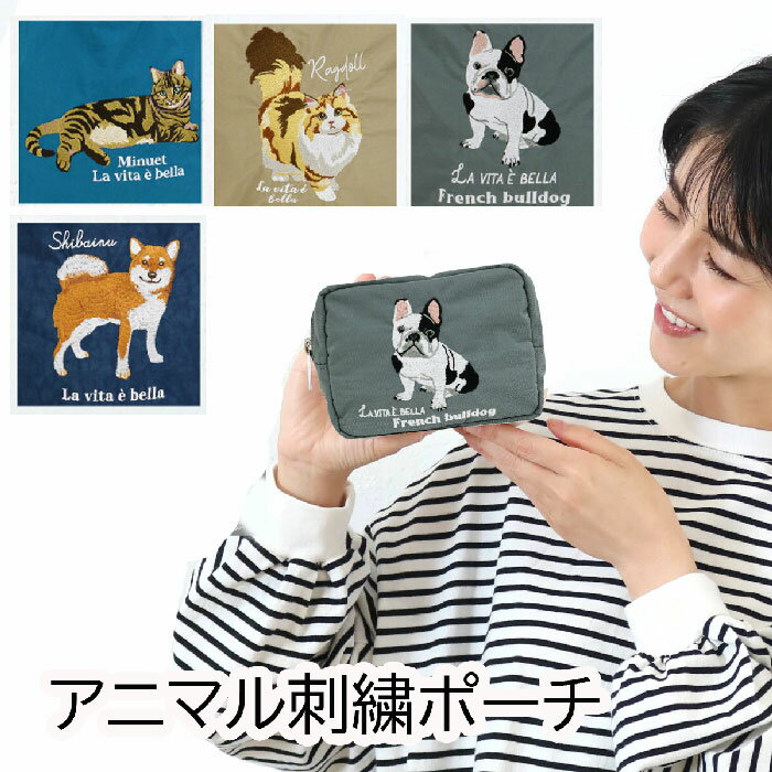 愛嬌たっぷり 可愛い犬と猫 ポーチ