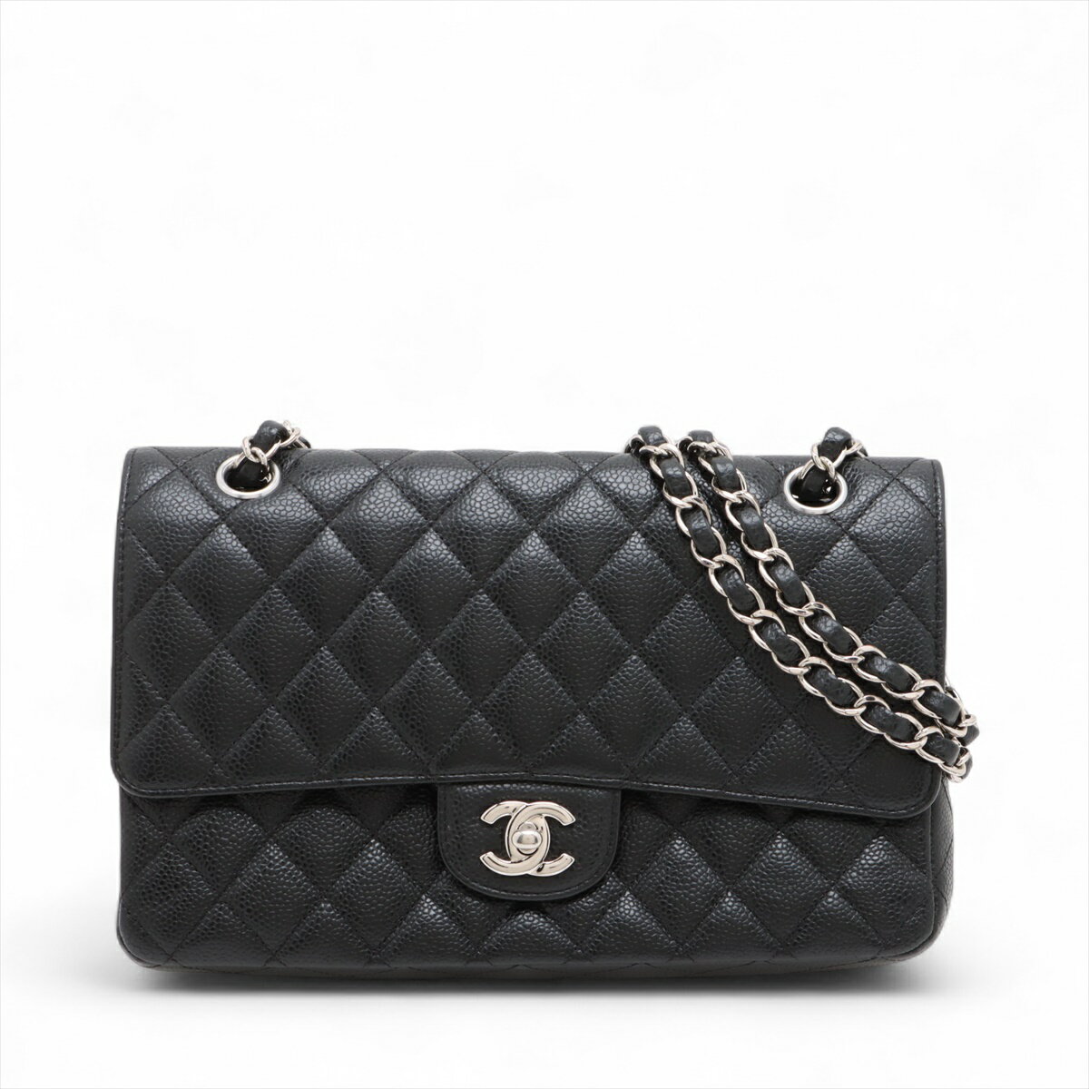 【中古】シャネル マトラッセ25 キャビアスキン ダブルフラップ ダブルチェーンバッグ ブラック シルバー金具 24番台 A01112