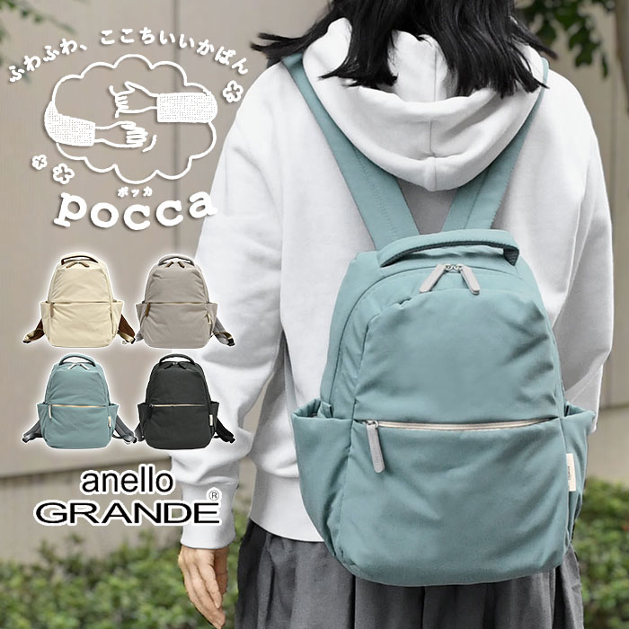 ミニリュックサック オシャレ 女子 女性 小さい 無地 たくさん 防犯 ポリエステル 14L 14リットル アネロ グランデ ブランド アイボリー グレーベージュ ブルーグレー ブラック 黒