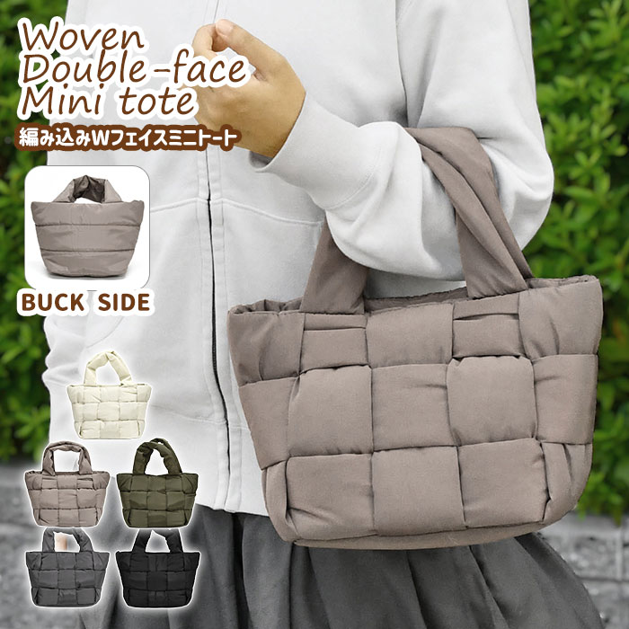 ミニトートバッグ キルティング 中綿 女性 女子 小さい ハンドバッグ リバーシブル ホワイト 白 グレージュ グレーベージュ カーキ チャコールグレー ブラック 黒