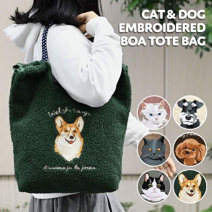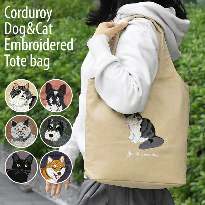 バッグ グッズ マザーズバッグ かわいい 可愛い 刺繍 大きい シンプル 大人女子 大人可愛い 手提げバッグ 女性 女子 中学生 高校生 大学生 猫グッズ 犬グッズ Uchinokokamo series