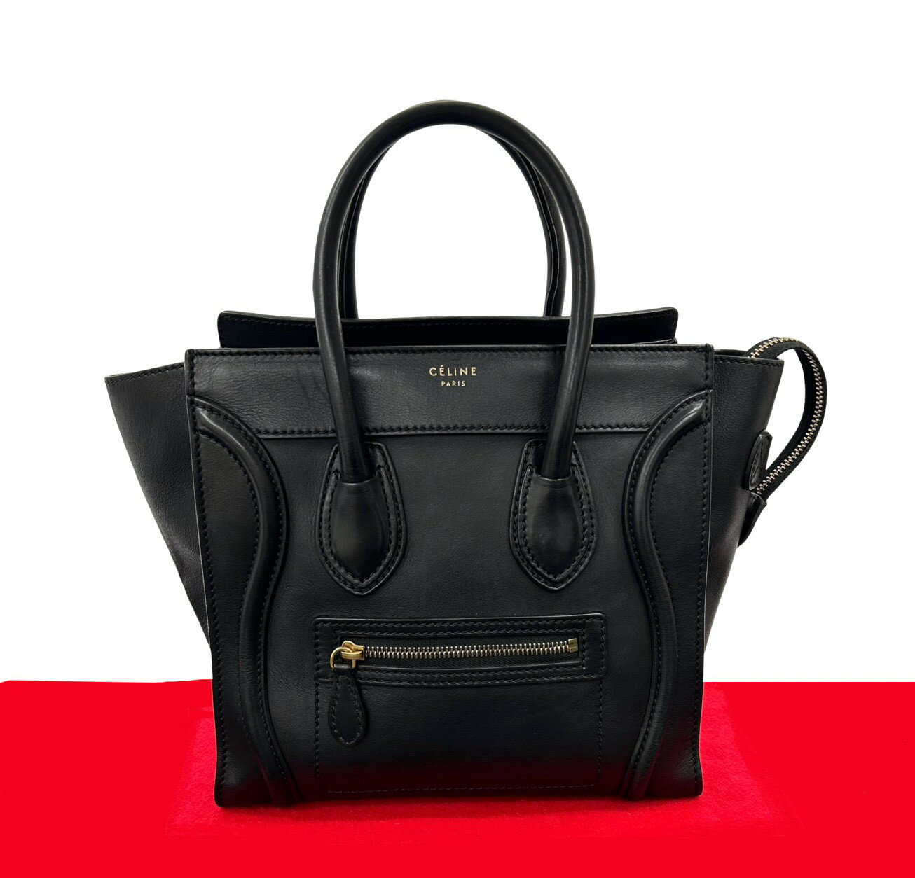 【ポイント2倍】極 美品 CELINE セリーヌ ラゲージ マイクロショッパー レザー 本革 ハンドバッグ ミニ トートバッグ ボストンバッグ ブラック 黒 21746【送料無料】【中古】