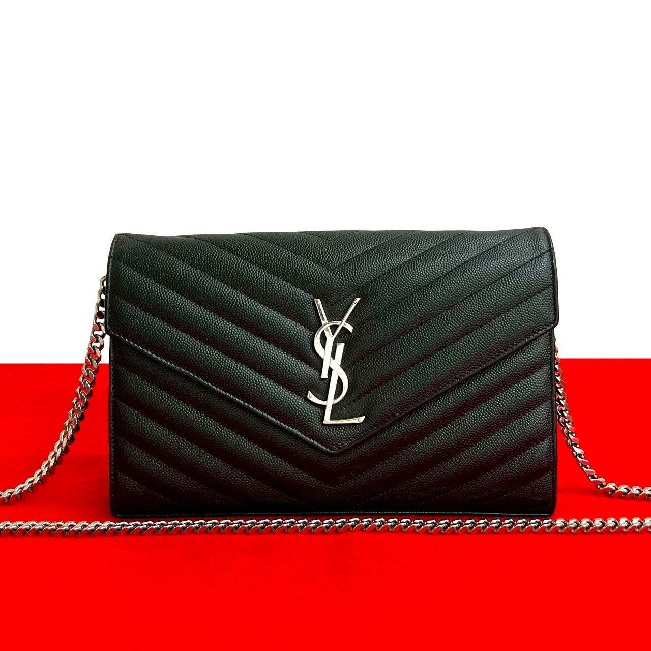 【ポイント2倍】極 美品 SAINT LAURENT PARIS サンローランパリ YSL ロゴ 金具 レザー 本革 チェーン ショルダーバッグ ポシェット ブラック 黒 29237【送料無料】【中古】