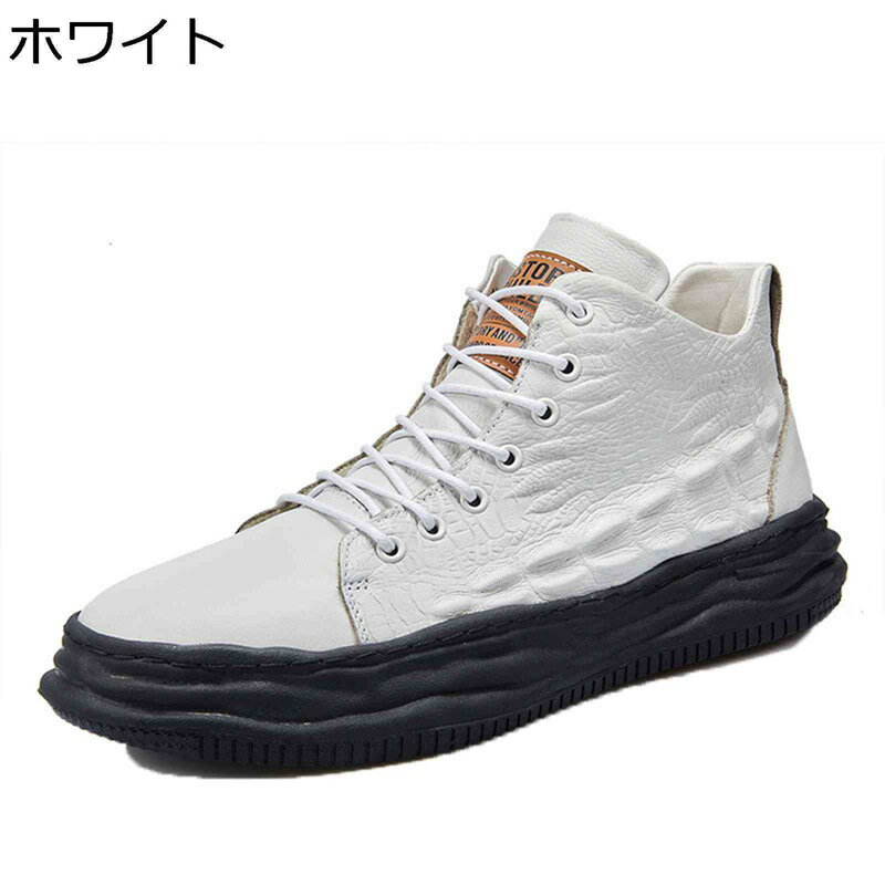 ショートブーツ クロコダイル柄 レザー メンズ 本革 厚底靴 カジュアルシューズ ハイカット レースアップ ワークブーツ バイクブーツ 秋 冬 牛革 革靴 日常 オシャレ お出かけ ブラック ホワイト
