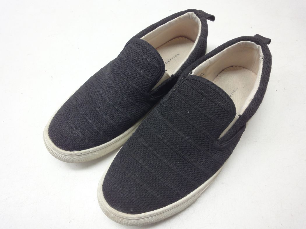 RESTORATION/レストレーション■L(26.0cm〜26.5cm程度)■キャンバス スリッポン シューズ ローカットスニーカー■BLACK/ブラック/黒■シンプルでカジュアルなデザイン☆【中古】