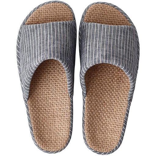 [SOARHOPE]ルームシューズスリッパ室内夏用麻室内履きメンズレディース軽量前開き滑り止め静音和風無地素足で履シンプルく洗濯可デニムブルーL