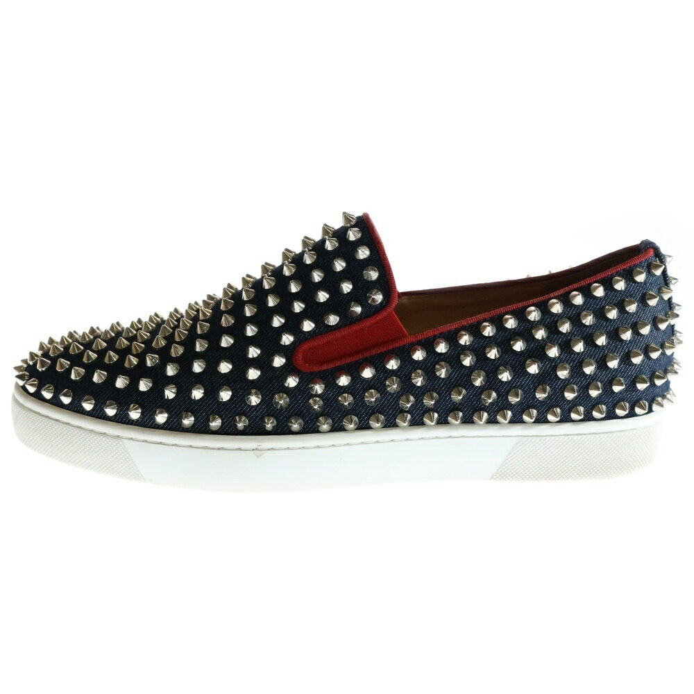 CHRISTIAN LOUBOUTIN(クリスチャンルブタン) サイズ:43 ROLLER-BOAT FLAT ローラーボート フラット スパイクスタッズ ローカットスニーカー インディゴ【中古】【程度B】【カラーブルー】【取扱店舗WASTE_NOT名古屋店】