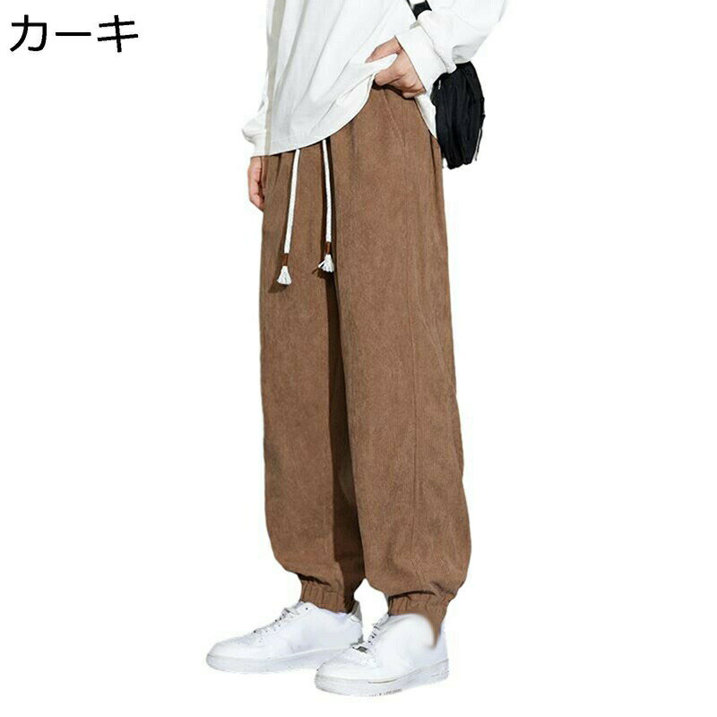 メンズ チノパン カーゴパンツ ワークパンツ ワイドパンツ ゴムウエスト 無地 純色 春秋 カジュアル 着痩せ ゆったり 涼しい 爽やか 優しい肌触り サラサラ 通勤通学 日常 普段着 カーキ ブラック