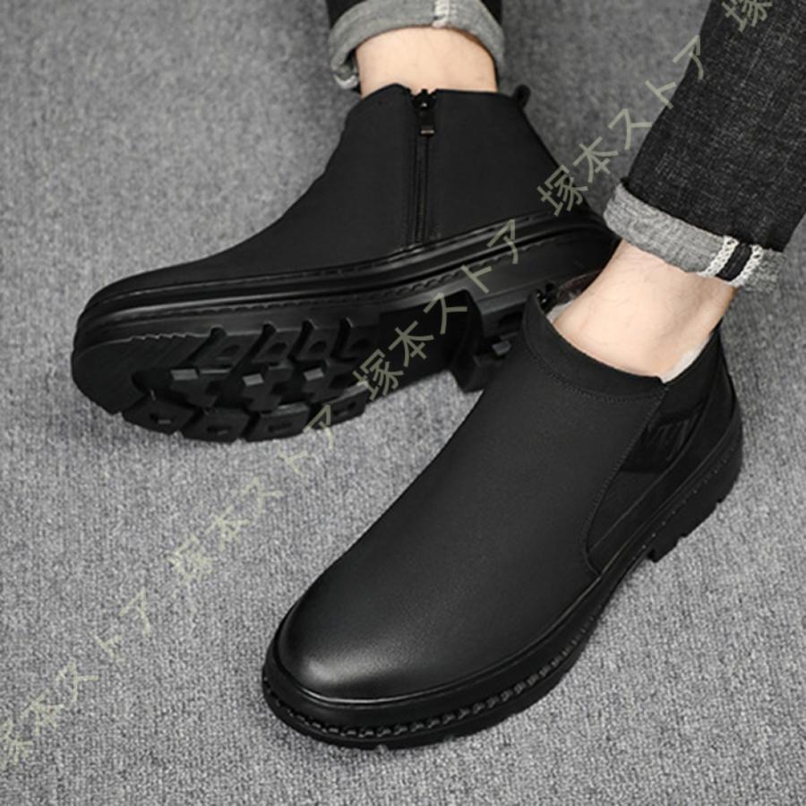防寒対策 スノーシューズ メンズ 防滑 防寒ブーツ 裏ボア レザー ワークブーツ ハイカット バイクブーツ 冬用 厚底 滑り止め スノーブーツ トレッキング