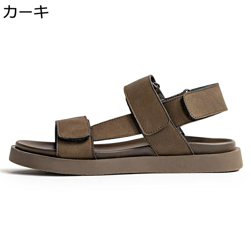 メンズ ビーチサンダル コンフォート 革サンダル カジュアル 厚底 ノースリーブ 通気 耐久性 歩きやすい マジックテープ 履きやすい 大きいサイズ アウトドア ウォーキング 夏 男性用