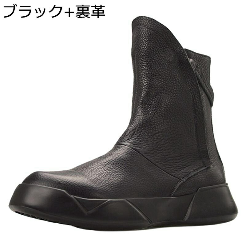 メンズブーツ サイドジップ 厚底 ショートブーツ 牛革 レザー 軽量 防水 滑り止め 履きやすい おしゃれ 春秋 冬靴 日常 キャンプ トレッキング