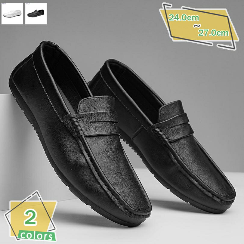 スリッポン ローファー 黒 白 ドライビング メンズ モカシンシューズ スムース調 デッキシューズ スニーカー 痛くない フラットシューズ 軽量 歩きやすい 疲れにくい 履きやすい