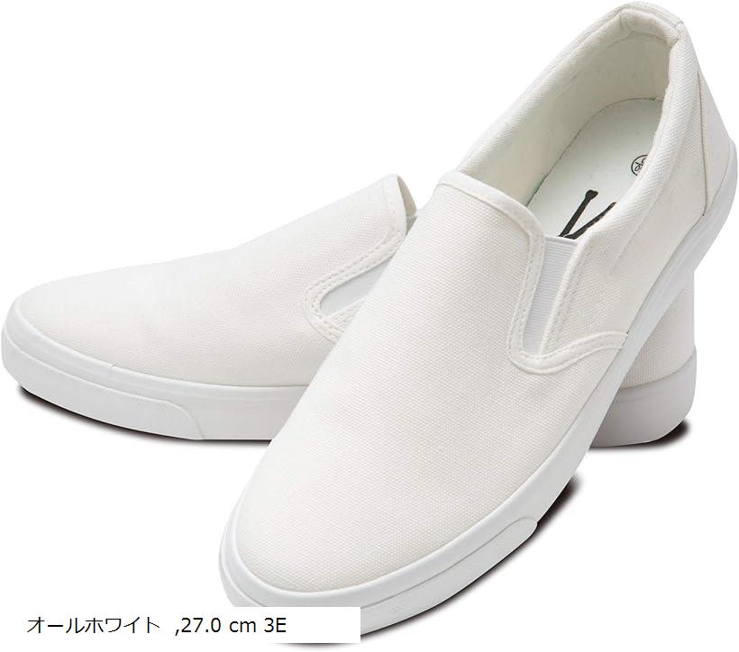 メンズ レディース スリッポン デッキシューズ 無地 黒 白 ライン キャンバス カジュアル スニーカー 男女 27.0 オールホワイト (オールホワイト, 27.0 cm 3E)