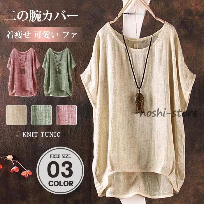 チュニック 半袖 リネンシャツ レディース フレンチスリーブ クルーネック トップス カットソー カジュアル 夏 ナチュラル