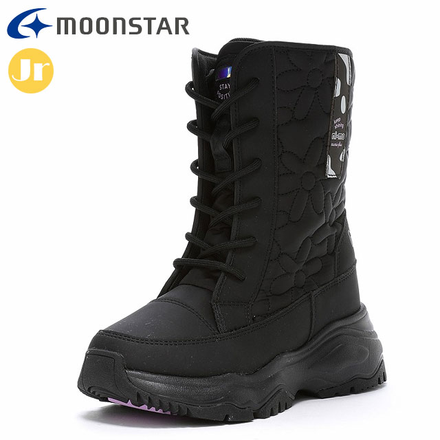 ムーンスター ジュニア ブーツ NI-MO NM WPJ025 LONG DOWN BOOTS ブラック 13662706 ニーモ ガールズ向け ウィンターブーツ 2E 厚底ソール シンプルなレースアップのダウンブーツ 半透明部品にトレンドの柄 子供靴 お出かけ カジュアルシューズ スニーカー