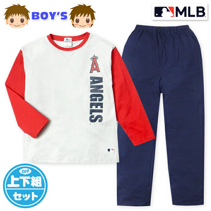 【送料無料】男児 キッズ ジュニア 天竺 長袖 パジャマ MLB エンゼルス 上下組 本体綿100% 子供服 男の子 130cm 140cm 150cm 160cm yg-2824a-rd【メール便対応】
